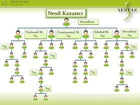 Bir çok network marketing firmasının aksine Aestas World'de kariyer kariyeri kesmez, aksine ekibinizde sizin kariyerinize gelen ya da sizin kariyerinizi geçen her Aestas distribütöründen o kariyere kazandığı ayki kazancı üzerinden bulunduğu derinliğe göre %2, %3, %4 ve %5 olmak üzere prim kazanırsınız.